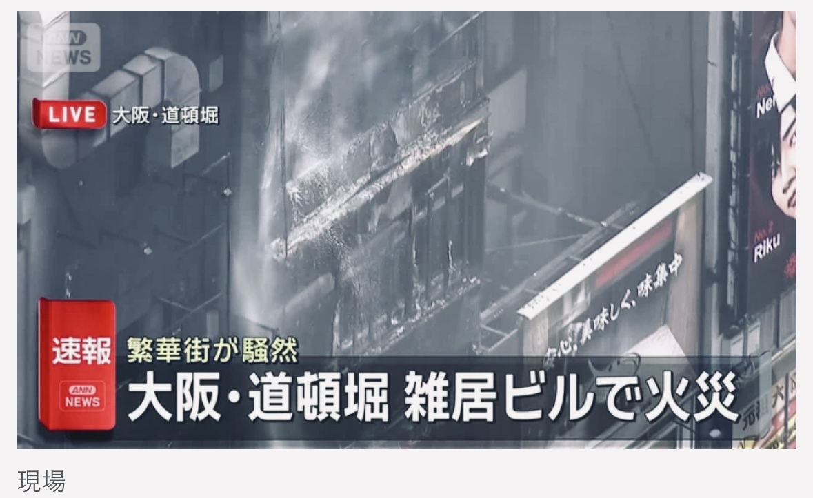 【Tin mới 】Cháy lớn tại tòa nhà nhiều tầng ở ngay trung tâm Dotonbori ー Osaka